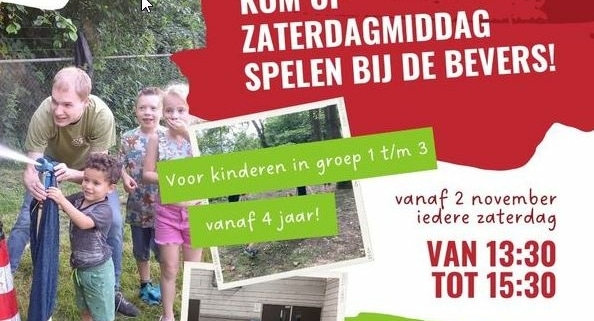 Zaterdag 2 november van 13:30 uur tot 15:30 uur zijn alle kinderen die in groep 1,2 of 3 zitten welkom een kijkje te komen nemen bij de bevers.